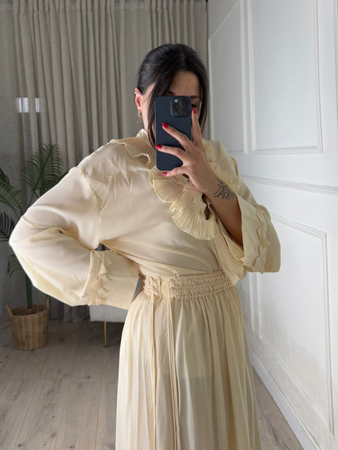 Set in chiffon con blusa manica ampia e dettaglio frontale e gonna effetto bustino con zip laterale