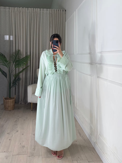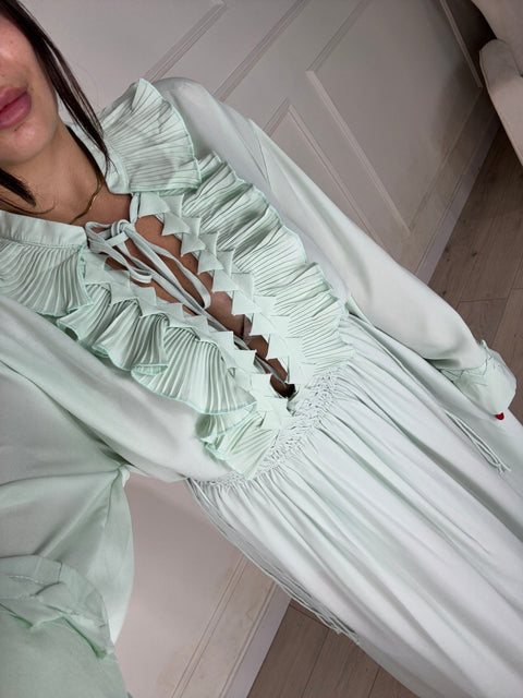 Set in chiffon con blusa manica ampia e dettaglio frontale e gonna effetto bustino con zip laterale